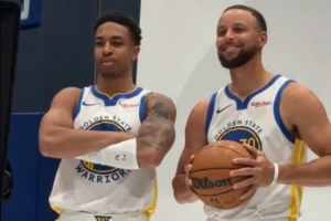庫里發現隊友麥克米利安站在攝影師旁邊,就指著問到:“他在那干啥?”旁邊有人回應庫里:“他想和你合影。”庫里說:“那他不知道問一下嗎?”庫里的保鏢說道:“沒有。”