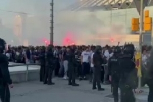 巴薩巴黎大戰(zhàn)一觸即發(fā)!大批巴黎球迷在球場(chǎng)前聚集并呼喊口號(hào)