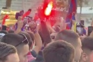 火藥味!巴薩球迷在球場外聚集,高喊辱罵巴黎的口號