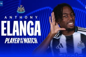 1過人成功1關鍵傳球,伊蘭加當選紐卡4-0圣吉羅斯一役全場最佳
