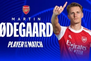 1助攻4關鍵傳球,厄德高當選阿森納2-0奧林匹亞科斯一役全場最佳