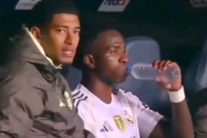 不滿(mǎn)馬斯坦托諾?維尼修斯被換下后一路喋喋不休,貝林厄姆一直勸