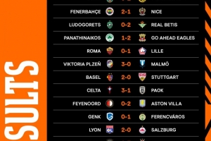 體育資訊10月3日訊 歐聯(lián)杯聯(lián)賽階段第二輪比賽戰(zhàn)罷,羅馬0-1不敵里爾,費內(nèi)巴切2-1戰(zhàn)勝尼斯,巴塞爾2-0擊敗斯圖加特,費耶諾德0-2落敗于維拉。