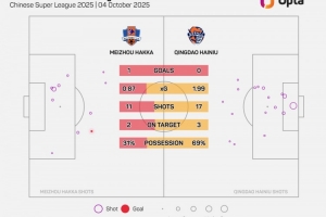青島海牛本場的控球率為69%,刷新球隊自2012年以來單場中超新高