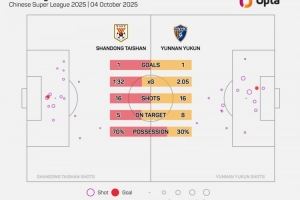 云南玉昆本場有8次射正,追平球隊單場中超射正次數(shù)的紀錄