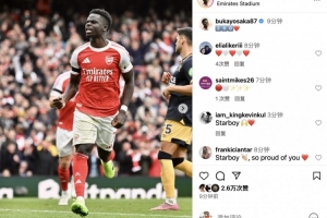 薩卡社媒曬照紀念自己里程碑之戰:英超第200次出場??