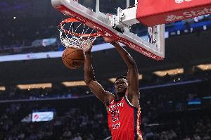 本場比賽,鵜鶘內(nèi)線米西表現(xiàn)出色,進(jìn)攻端很高效同時防守也很有威懾力,在20分鐘的時間里,投籃6中5,拿到10分6籃板3助攻1搶斷2蓋帽的數(shù)據(jù),正負(fù)值+18。
